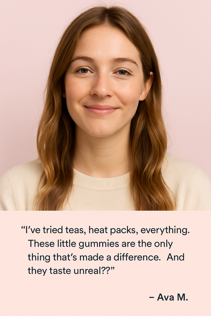 A carefully curated mix of scientifically backed ingredients help keep your hormones balanced, so you feel calmer and have less bloating, mood swings, or soreness before your period.